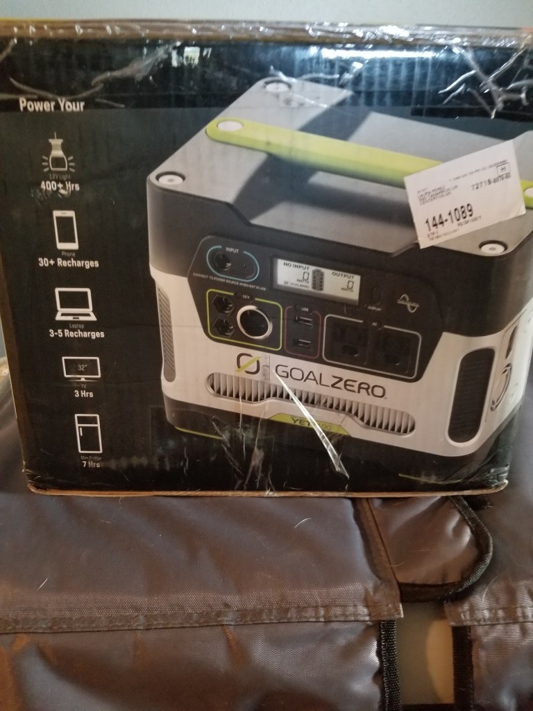 I also did a lot of research on power banks/solar generators. There are plenty of options out there but I ultimately landed on Goal Zero due to reputation, reviews, and quality/support. This solar generator has had no problem running my Dometic CFX50W fridge or charging lap tops/phones on weekend trips. I keep the Goal Zero topped off by plugging it into my Tacomas 100W/400W inverter in the bed and charging when I am driving, this has worked flawlessly. I did purchase this unit used so the packaging was a little beat up but I have had no issues with the unit itself.