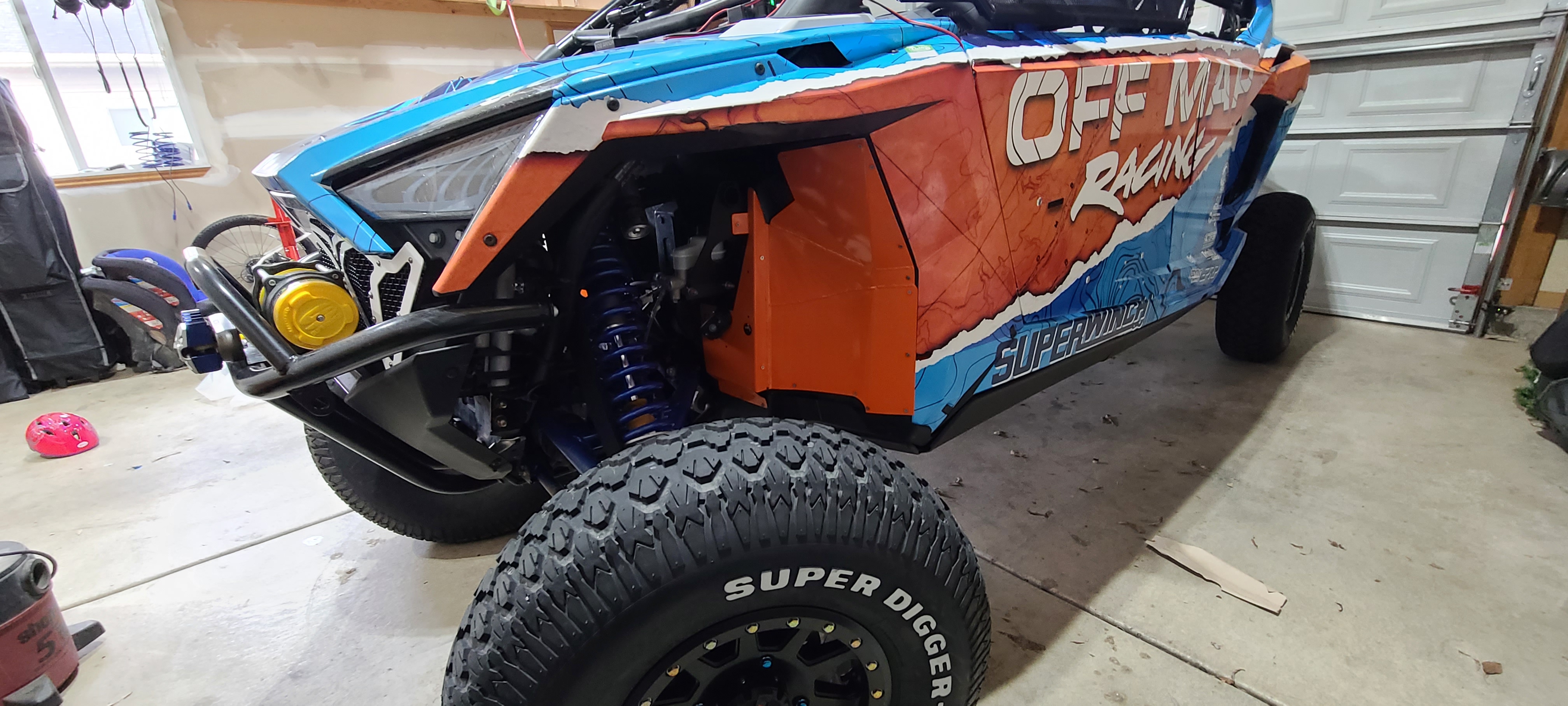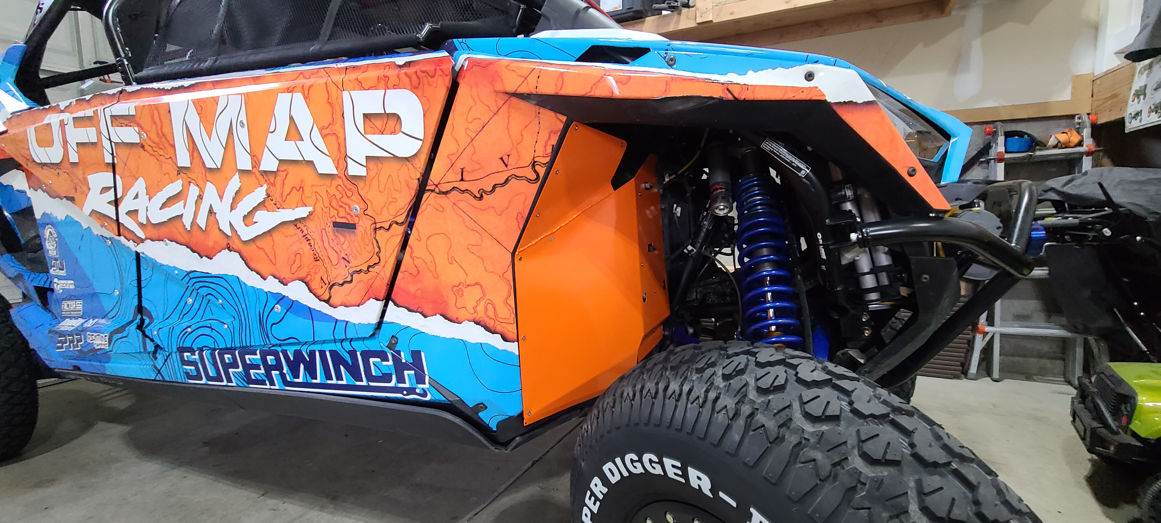 Enter the ATU (All Thingz UTV) Inner Firewall Protection Kits. We put the orange set on our Pro XP 4, and they match the wrap almost perfectly. These metal enhancements go on in about 15 min per side and give me the peace of mind and protection I wanted from a real firewall. All Thingz UTV has some great videos of these firewalls’ durability on their social media, including some pretty aggressive axe strikes not even getting thru. If you ride with any trees or other debris around, I will encourage you to take a look and see if these are right for you. They make them for a bunch of different UTVs, and they can be found here.