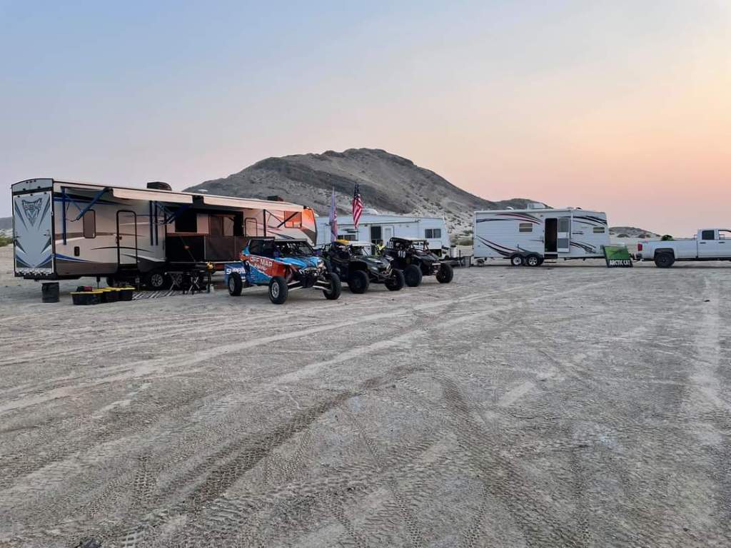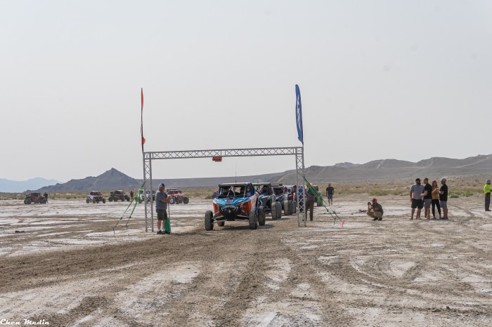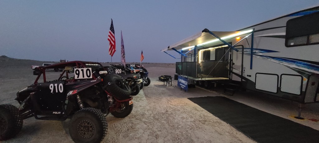 This race was supposed to be 250 miles at night, but due to a miscommunication with the BLM, it became the Knolls at (K)Noon. We arrived Thursday to set up and relax. Since Jackpot, we have partnered with three other race teams to share resources and formed the Team Utah group. Knowing we had a big group coming, I arrived early to stake a claim to a large section of pit row. That evening Jake from Woodnerlust Racing in the 910 showed up, followed shortly by our good friend Dave with D&D racing in the 909. Jake has been our chief mechanic for the whole season thus far but has got his car together to race and Can not possibly be prouder of him, and his 2nd place finish in the Sportsman class in his first outing. Dave nailed down a 3rd place finish in the same class. The fourth member of our Dynamic Quattro ran in PRO Turbo with me and was piloted by Robert from Borrowed Parts Racing. Unfortunately, Robert’s secondary decided racing was over for the day in a fantastic way, and there was no repair possible on the lake bed.