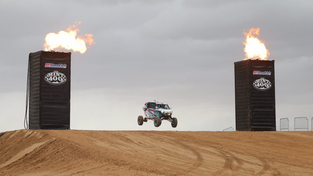 The first race was the Mint 400 and we were killing it! 90 miles in a hub gave out. Rolled the car up on its side. No problem that’s what my crew is good at. We were able to get back into the race and climb back onto the podium. But then disaster struck again. A faster class car decided to slam into us as we were letting them by and long story short it ended the race for us. If you want to read the whole story check out this post. LINK