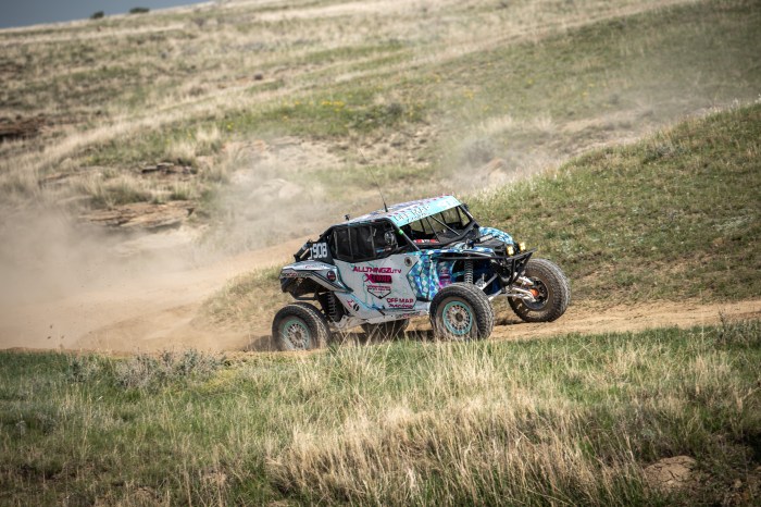 So we ran as hard as we could. But of all damn things. The instrument cluster fell out. I felt something hit my feet in the rockiest part of the course. Look down and there is my speedo sitting on my foot hanging by a wire. Can’t let that get ripped out it would kill the whole car. So we pulled over and disconnected it and made Mike hold on to it. Doing this I was nervous something would go wrong with the computer but no she ran fine except for one thing. No power steering. Yep the the X3 has multiple power steering settings and they come up on the dash when you select them. With it unplugged the power steering was just gone. SO 30 miles of rough steering lock to steering lock turning later we made it to the pits. My team had a fist full of zip ties and duct tape waiting and we put the dash back in the car and zip-tied it to a bar so it wouldn’t fall again. SUCCESS I had power steering again. One more lap to go and it was push as hard as we could. Ultimately…. 5th place. I can only imagine how much we lost with a belt, tire, and the damn speedo. Could it have been a podium? Maybe. Was it great to just finish that beast? Yes.